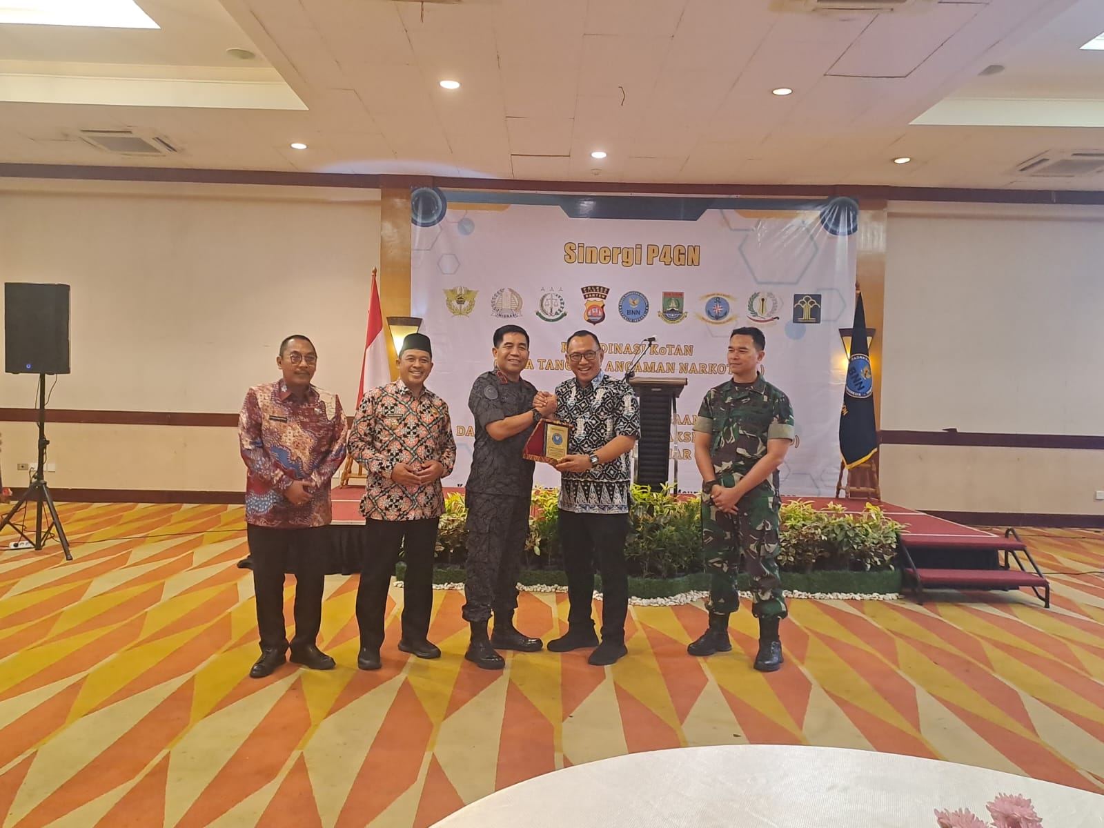 Penyerahan piagan penghargaan diberikan langsung oleh Kepala BNN Provinsi Banten Rohmad Nursahid, dalam rangkaian Sinergi P4GN Koordinasi Tanggap Ancaman Narkotika diserahkan.