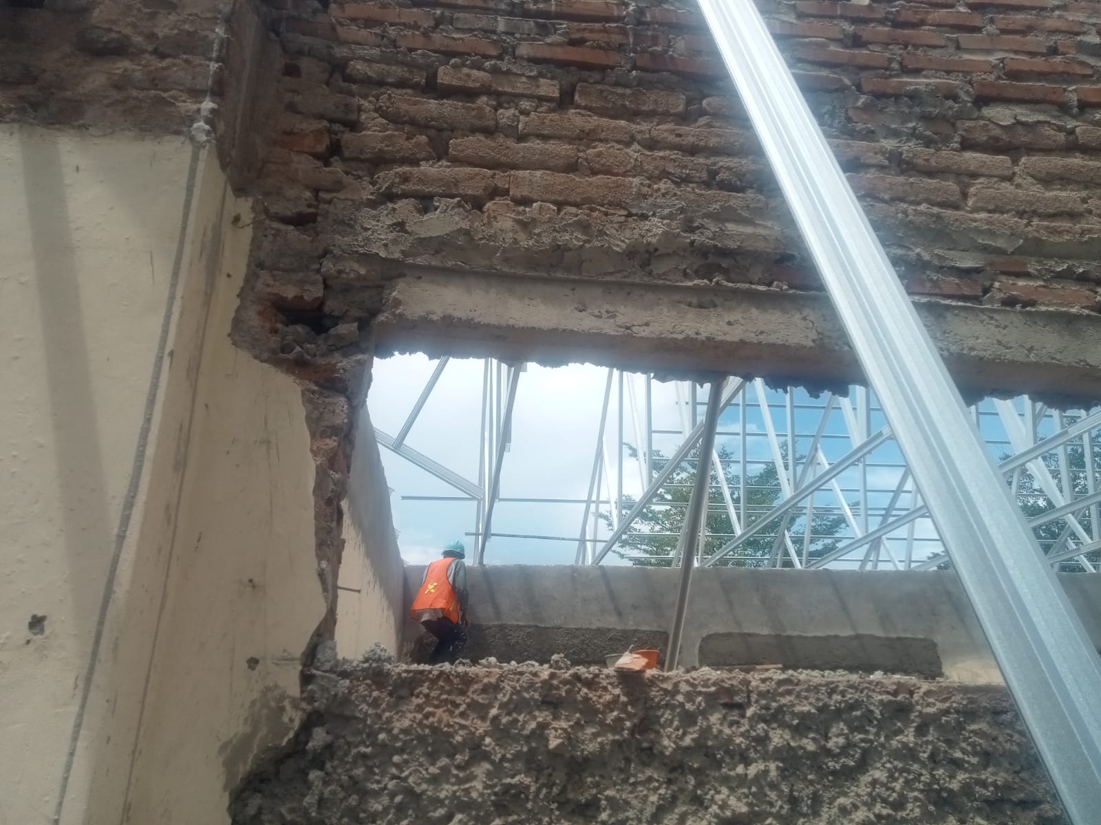 “Masih ada tembok yang belum diplester. Terlihat jelas adanya penggunaan material bata bekas. Jika menggunakan material baru, struktur bangunannya pasti akan lebih kokoh,” kata Ari.