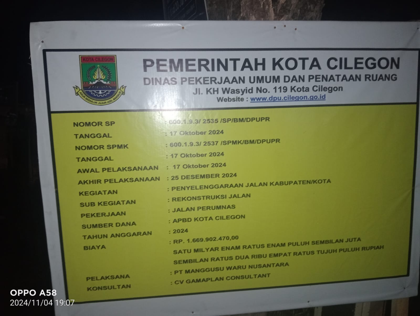 – *Pekerjaan*: Rekonstruksi Jalan Perumnas
