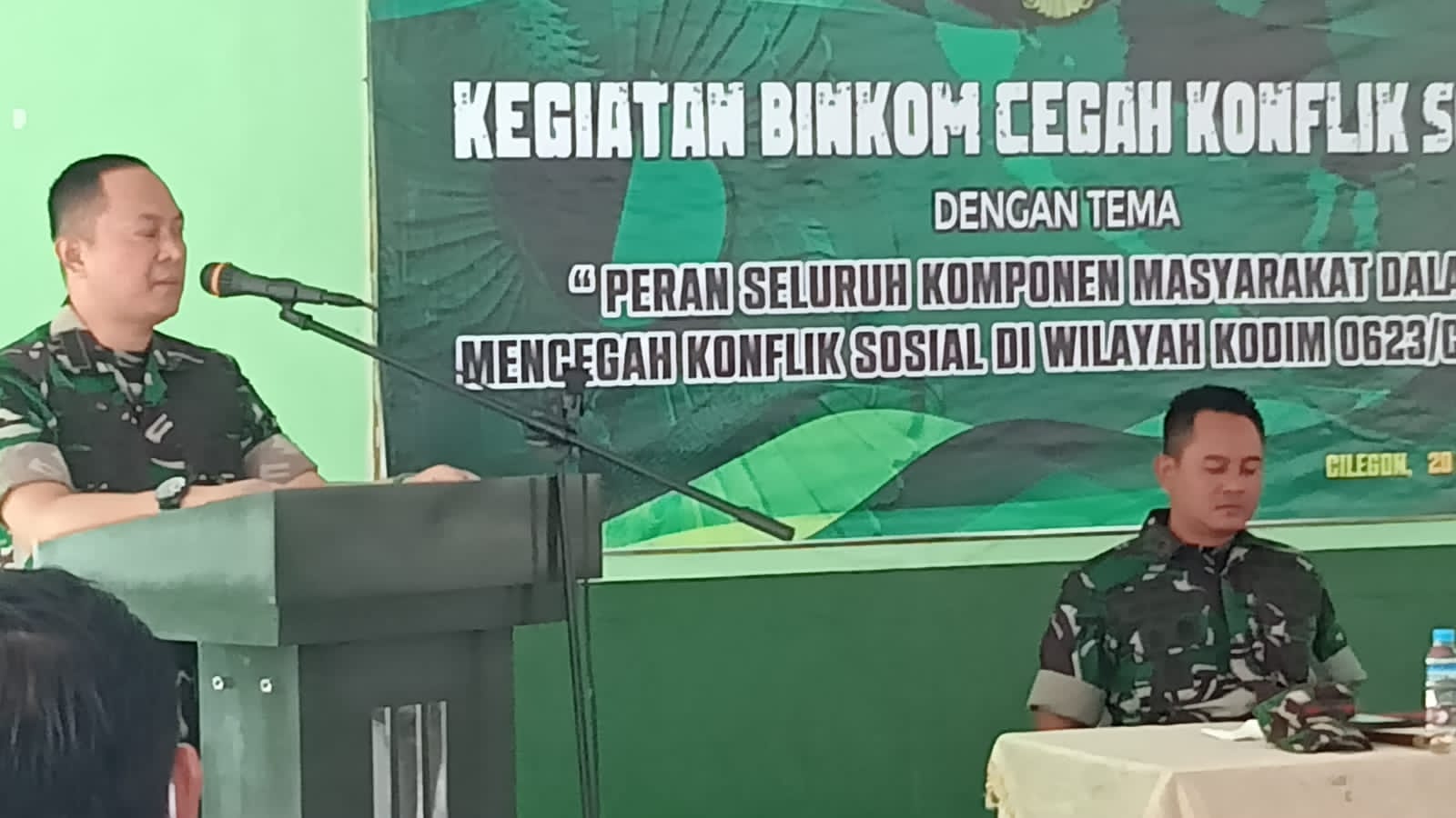 CILEGON,- Medianews.co.id,- Kodim 0623/Cilegon mengadakan kegiatan Binkom cegah konflik sosial dengan tema” Peran seluruh komponen masyarakat dalam mencegah konflik sosial di wilayah Kodim 0623/Cilegon” di Aula Makodim Kodim 0623/Cilegon, Selasa (20/09/2022).