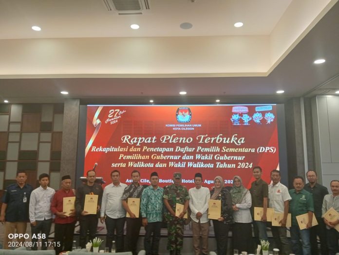 CILEGON,- Medianews.co.id,- Komisi Pemilihan Umum (KPU) Kota Cilegon menggelar Rapat Pleno Terbuka untuk Rekapitulasi dan Penetapan Daftar Pemilih Sementara (DPS) dalam Pemilihan Gubernur dan Wakil Gubernur serta Pemilihan Walikota dan Wakil Walikota tahun 2024 di Aula Hotel Aston Cilegon Pada hari Minggu, 11 Agustus 2024, .