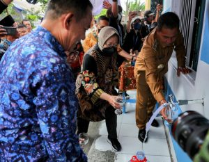 SERANG,- Medianews.co.id,- Menteri Sosial Tri Rismaharini mengambil langkah investasi jangka panjang dengan menyulap air keruh menjadi air siap minum. Hal ini dilakukan Mensos Risma bersama Wakil Ketua MPR RI Yandri Susanto saat meresmikan fasilitas instalasi air bersih di tujuh kecamatan di Kabupaten Serang, Banten.