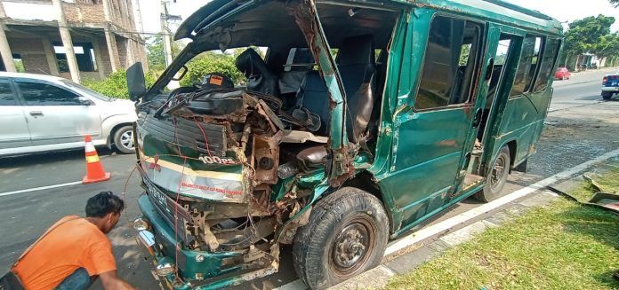 Serang ,- Medianews.co.id,- Sebuah minibus elf yang bernopol A 7813 PL jurusan Malimping – Serang menabrak satu motor scoppy warna putih bernopol A 2257 DB di jalan raya Boru, Palima Serang, Banten, Jumat (27/5/2022).