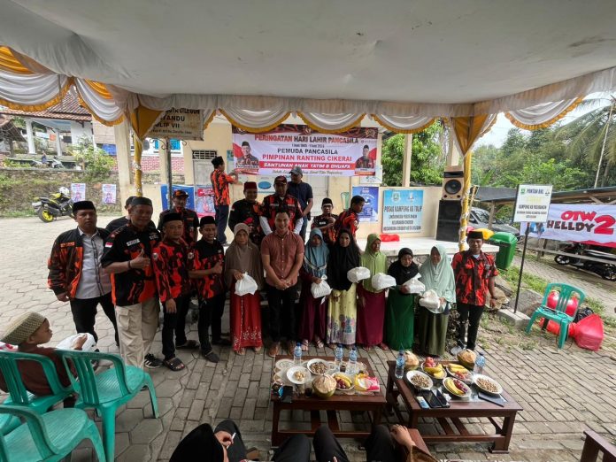 Dalam Momentum Hari Lahir Pancasila ini di manfaatkan Pemuda Pancasila ranting Cikerai untuk saling berbagi kepada anak yatim dan dhuafa.