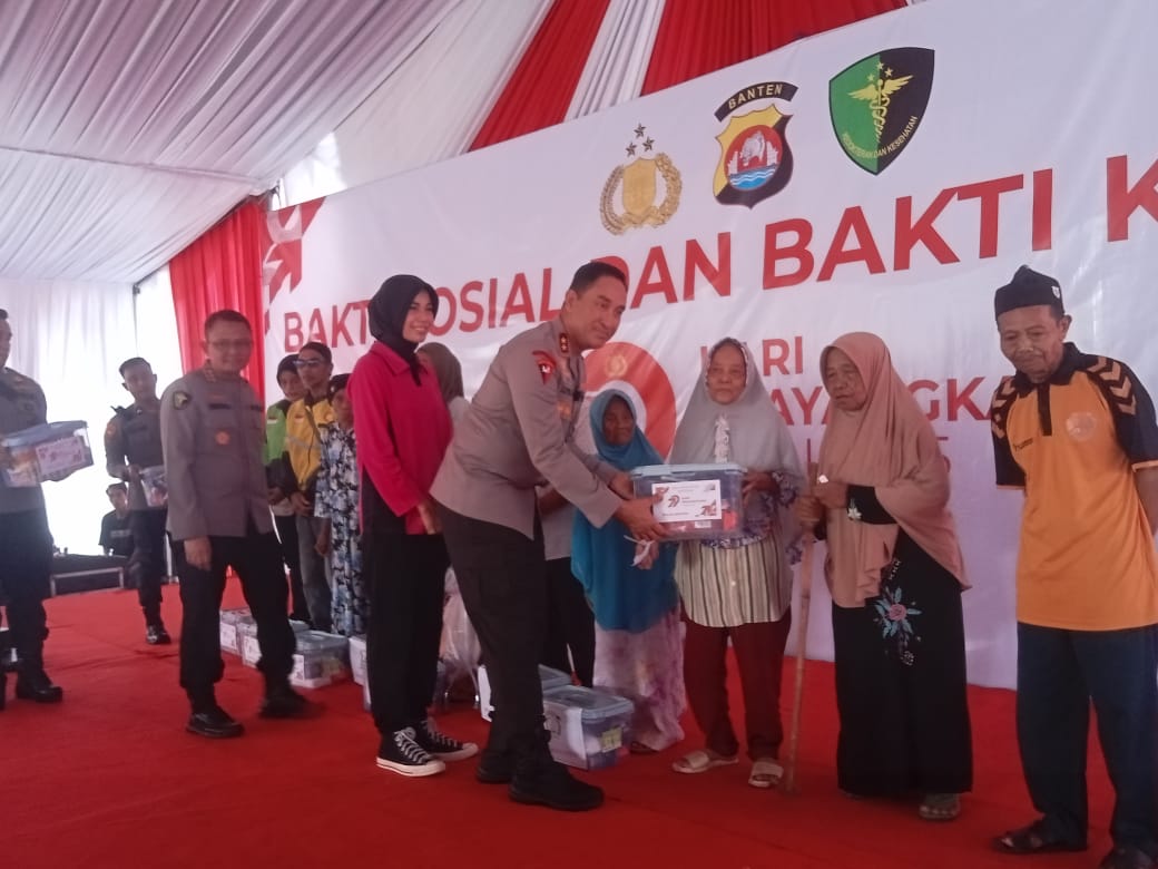 Serang,- Medianews.co.id,- Polda Banten gelar bakti sosial dan bakti kesehatan dalam rangka Hari Ulang Tahun Bhayangkara ke 79, secara serentak di seluruh Indonesia.
