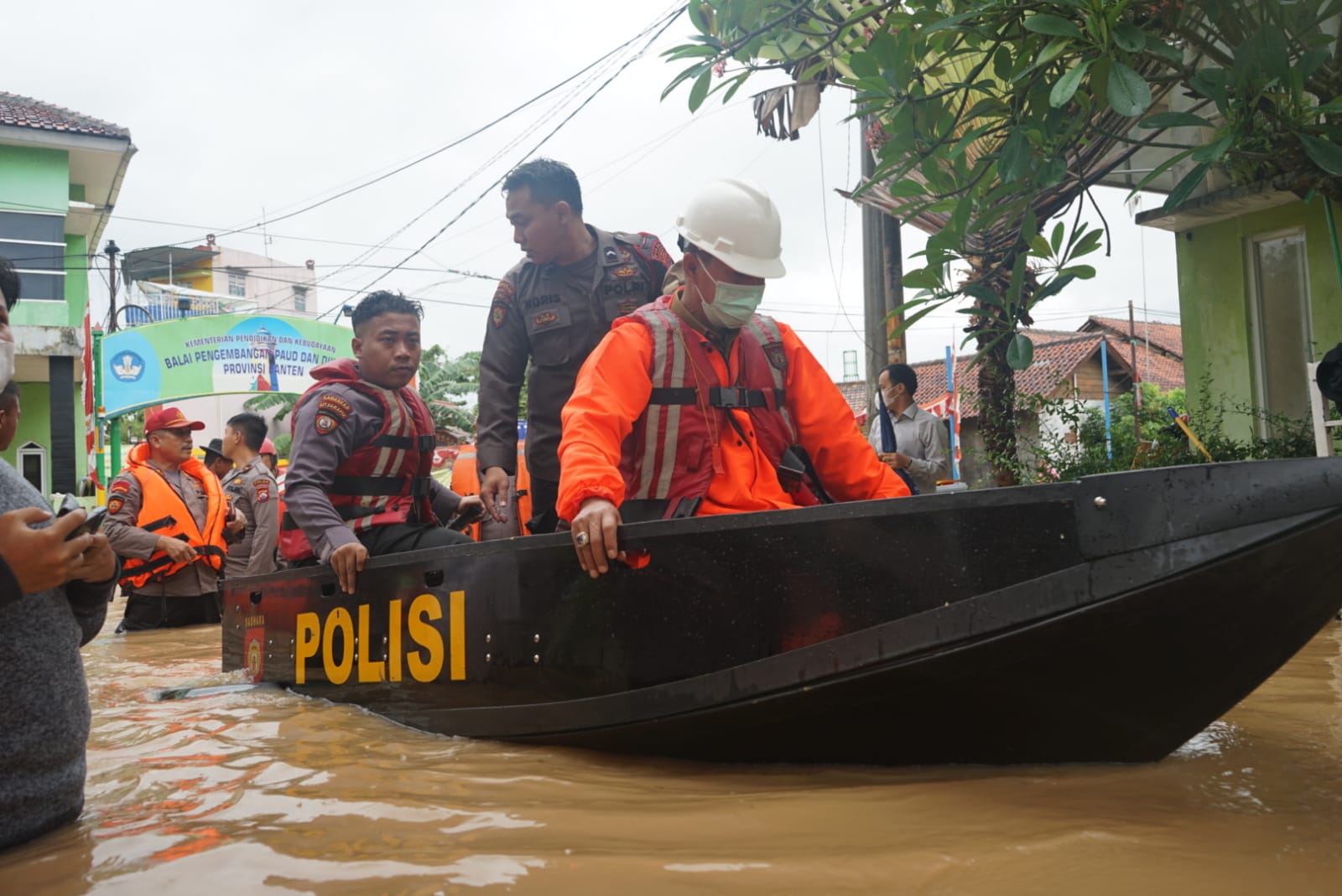 Dalam hal ini Pemerintah Kota Serang beserta seluruh jajaran OPD yang juga dibantu oleh aparatur TNI dan Kepolisian beserta BNPB, Basarnas Provinsi Banten, terus berupaya melakukan evakuasi warga dengan perahu karet ke tempat yang lebih aman.