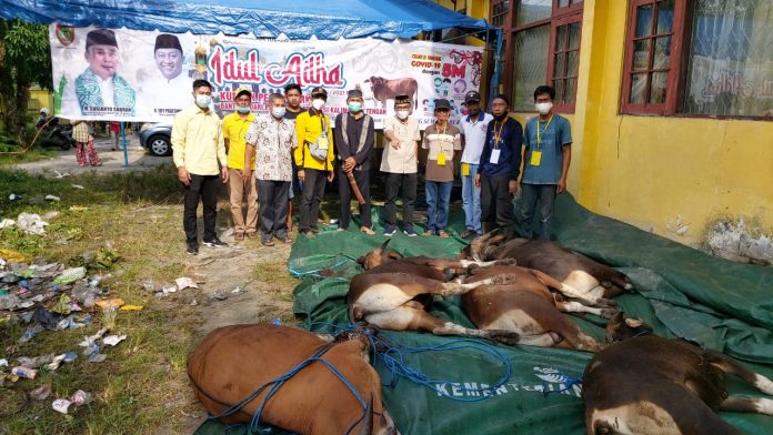 Kalteng,- Medianews.co.id || Dalam pelaksanaan qurban 1442 Hijriyah Tahun 2021 Masehi, Alhamdulillah kita dari DPD Golkar provinsi Kalimantan Tengah di hari raya qurban tahun ini tahun 1442 Hijriyah ini bisa menghimpun 5 ekor sapi hewan qurban yang mana 5 ekor sapi ini adalah partisipasi dari pengurus DPD Golkar provinsi Kalimantan Tengah dan juga partisipasi dari kawan-kawan yang di fraksi fraksi Partai Golkar DPRD provinsi Kalimantan Tengah yang ada di DPRD Kalteng.