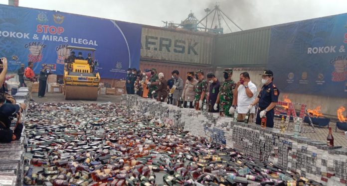 “Pemusnahan ini merupakan bukti komitmen kami dalam mengawasi dan menekan peredaran minuman mengandung alkohol dan rokok ilegal. Mengamankan hak yang menjadi potensi penerimaan keuangan negara,” ujarnya.