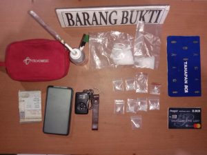 ” pada saat itu juga disita Sebuah tas warna Merah yang didalamnya terdapat 2 (Dua) paket plastic bening berukuran besar berisi Kristal yang diduga narkotika jenis sabu sabu dan 9 (Sembilan) paket plastic bening berukuran kecil berisi Kristal yang diduga narkotika jenis sabu – sabu dengan berat kotor keseluruhan 21,12 gram,” Dedi Mirza